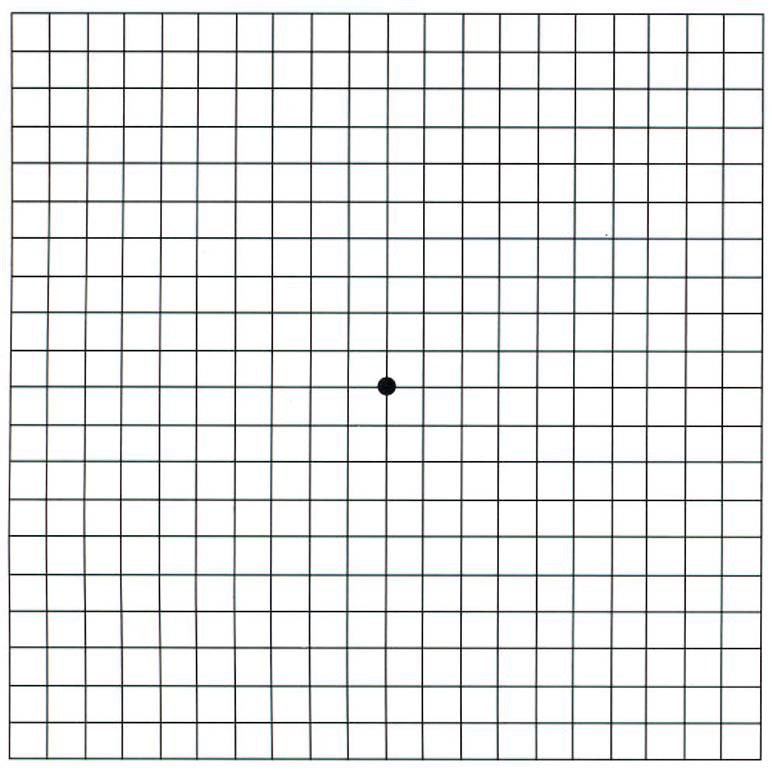 當凝視中心黑點時,如發現方格表中心區出現空缺或曲線,便可能是眼底出現毛病的徵兆,請盡快作詳細檢查。