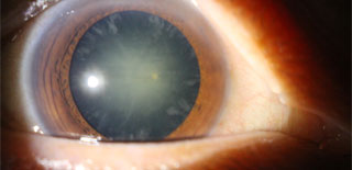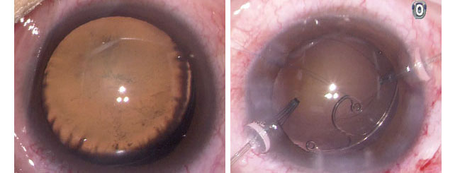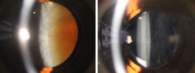 (醫生病例) 創傷性白內障晶體移位(左圖)