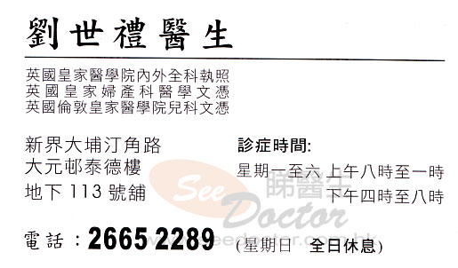 劉世禮醫生醫生- 尋醫經歷詳述:
