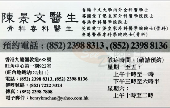 因為由於我膝關節咔咔作響,所以很擔心關節磨損,於是我看了骨科陳景文醫生,他很用心看我的病況,他亦很耐心地聆聽我的症狀,更詳細地解釋我的疑問,我問他是否需要照X光或打針,他解釋說我的情況不嚴重,所以目前情況不需要,感覺他不會隨意讓他的病人作不需要的使費,算得上是位有醫德的醫生