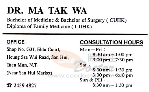 Dr MA TAK WA