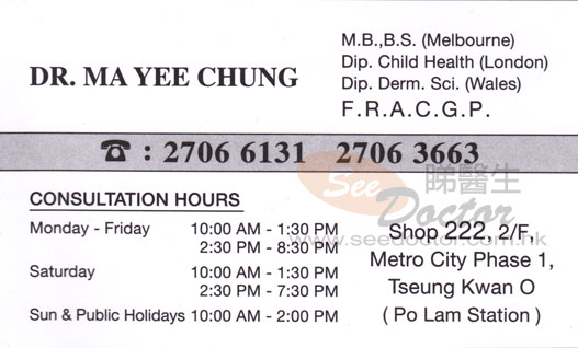 馬宜聰醫生醫生- 尋醫經歷詳述: