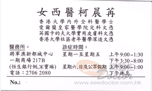 柯晨苒醫生普通科名片