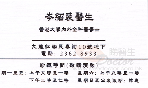 岑紹裘醫生醫生- 尋醫經歷詳述: