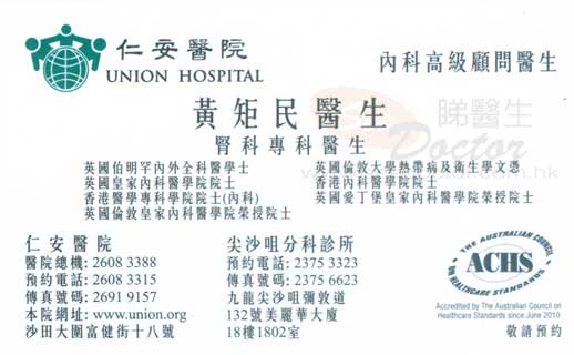 香港廣華醫院內科顧問醫生及腎科主任(1991-2016)