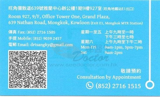 Humble and professional doctor but the consultation fee is very expensive. I am completely recovered from doc tsang care. Many thanks to Doc tsang.
