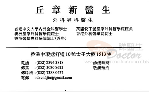 我和另一位朋友說到我的經歷,她之前是由加拿大專程回來看痔瘡的,她的情況非常嚴重,已多次做了幾次結紮手術也未能解決問題,她也看了這位醫生,同樣地沒作任何儀器的檢查,只是做了簡單的用手檢查,同樣地這位邱醫生提議她做大腸檢查,幸運她沒有受騙。綜合以上我和我朋友的經歷,這位醫生是不懂做任何其他痔瘡解決的方法,只是想做內窺鏡,任何有痔瘡問題的人都不要去看這位醫生,更要記着他會提議你作不同的檢查,要小心的考慮,幸好我取消了做MRI,他原本是安排了大腸鏡之後再做兩個MRI….