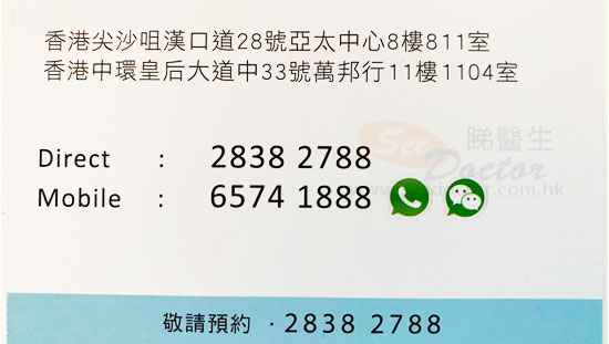 地址:尖沙咀漢口道28號亞太中心811室應診。