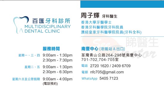 我去過周醫生度好幾次:整牙、複診、再照laser scan;老實講,見醫生嘅時間係好少嘅,但係佢哋嘅姑娘非常專業而且好醒目亦都好快手!令到天生真係非常怕睇牙醫嘅我克服左唔少嘅恐懼。