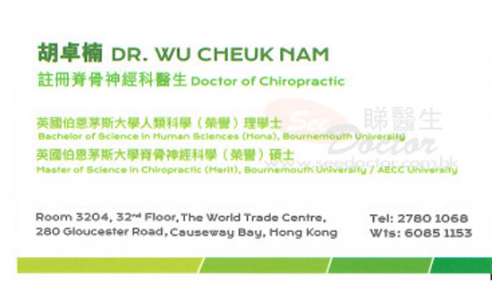 胡卓楠醫生脊骨神經科名片