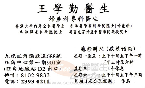幾年前做過檢查,今次2026年再做恆常婦科檢查,做抹片拿取組織時由王醫生很專業,完全無痛!整個過程有女姑娘協助,王醫生講解很專業和精準,完全不明白為何網上有評論說王醫生感覺很差,我看了很多次感覺也很良好!