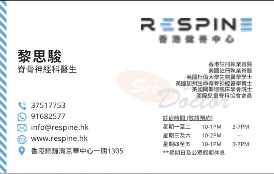 黎思駿醫生脊醫- 尋醫經歷詳述: