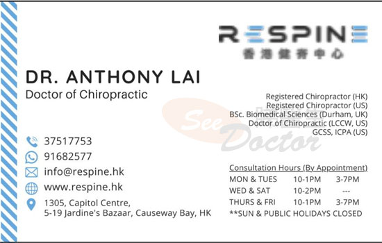 就是這樣反覆的酸痛在5次療程後我的腰痛便減退了七、八分,在最後一次的療程中黎醫生還推介了一位外國的脊醫給我(推介的那位醫生就在我工作的地方附近)若果我有需要便可以在當地看脊醫。