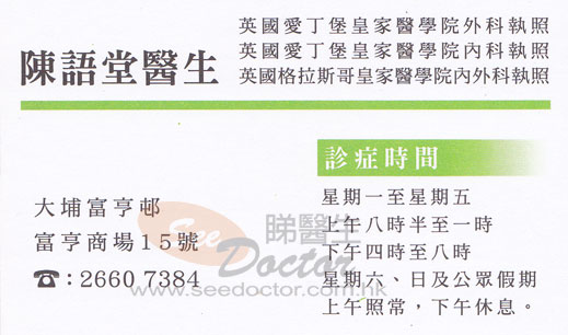 陳語堂醫生醫生- 尋醫經歷詳述: