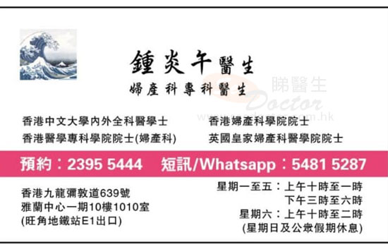 鍾醫生的診症收費也合理,我揾鍾醫生睇症前,看了2位年紀較大的婦科醫生,收費貴,更遇上不禮貌的對待,甚至性騷擾,醫德和品德均極欠缺。