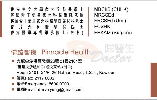 Dr Yung was polite and clear in diagnosing the scrotum lumps that I experience. He checked it in great details and provided explanation clearly on the impacts of the lumps. I recommend him wholeheartedly for anyone with urology concerns.