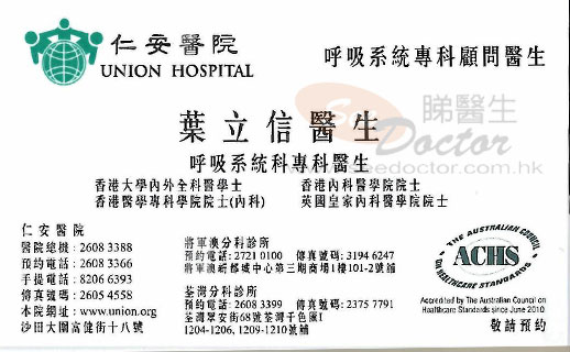 葉立信醫生醫生- 尋醫經歷詳述: