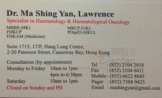 不幸患上白血病,卻又幸運地遇上馬承恩醫生,他不僅專業,而對病人和病人家屬的查詢都有無比的耐性,讓病人在失望的邊緣,燃點希望。所以衷心感激馬醫生!