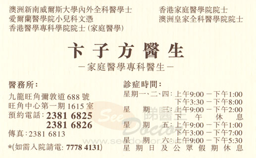 • 診金收費 : ~ $ 300