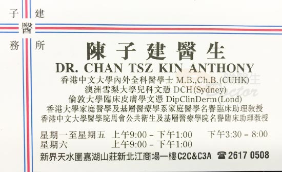 女兒考DSE的時候,面上暗瘡變得好犀利,非常嚴重,入到大學之後變本加厲,成日匿埋屋企唔肯出街,睇過好多專科醫生都唔得。最後聽朋友介紹特登入嚟天水圍搵陳醫生,陳醫生用特別嘅口服A酸劑量,很快便醫好女兒的暗瘡,其實喺其他醫生都食過A酸,但係沒有見效。