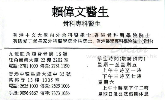 賴偉文醫生醫生- 尋醫經歷詳述: