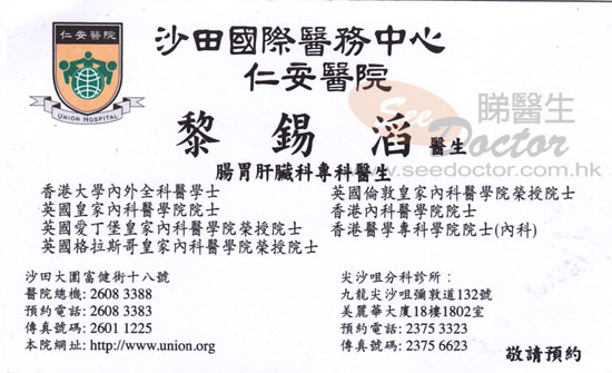 黎錫滔醫生醫生- 尋醫經歷詳述: