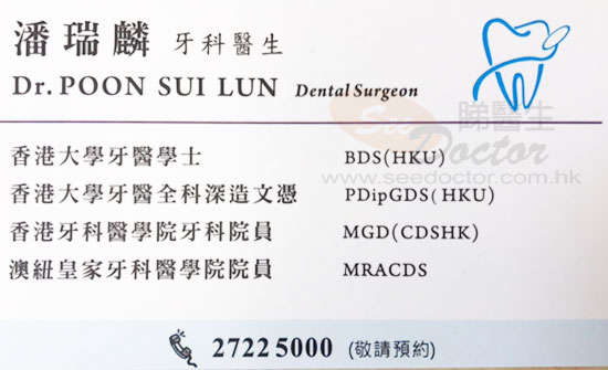 一直都有看開潘醫生,個人感覺潘醫生很專業有善,和很有醫得,而且收費也很合理。早幾個月前,媽媽因跌親,撞斷了門牙,於是我姐姐介紹他在旺角xx牙醫補了斷調的門牙,不到一星期便脫掉,於是我帶媽媽過來看潘醫生,潘醫生,很有耐心的解說媽媽的牙齒問題,牙齒修補的過程也很耐心,補完牙齒媽媽十分滿意,大讚醫生手勢很好,而且我看到潘醫生對老人家很有外心的,因為我媽媽比較長氣,醫生也不厭其煩的解答。前幾天因為種了十幾年的種牙,感覺有點鬆,但由於十幾年前在尖沙咀東英大廈的牙醫種,樓宇已拆卸,也不記得牙醫的名字,於是找了潘醫生,潘醫生幫我照過X光後,解說我種牙的問題,說是螺絲鬆了,由於他的地方沒有我種牙的器材,潘醫生也不厭其煩幫忙我找其他有這器材的牙醫的醫生。而且診所的姑娘,也很有禮貌和有善。很感恩在我家附近有這位好的醫生診所