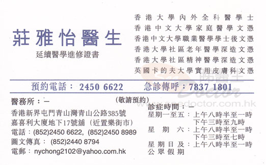 莊雅怡醫生普通科名片