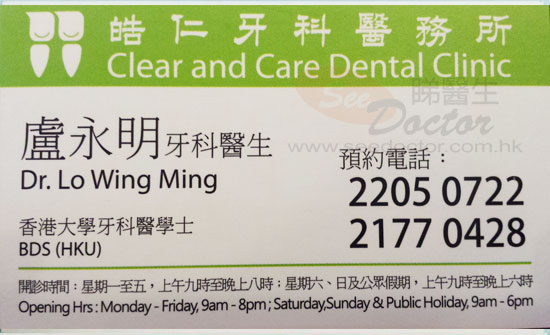 本人搵盧醫生洗牙好多年,一直都覺得盧醫生態度好好,但近年每況越下,每次準時到診所都發現在同一時段約了多於一位病人需要等候。上年洗牙後留意到下排牙後側仍有牙石,向盧醫生查詢時表示果啲係洗唔甩唔係牙石,唔關佢事,但今年洗牙後看到上年的牙石又可以全部清掉,但洗牙後部份位置仍有牙跡。不推薦再光顧。