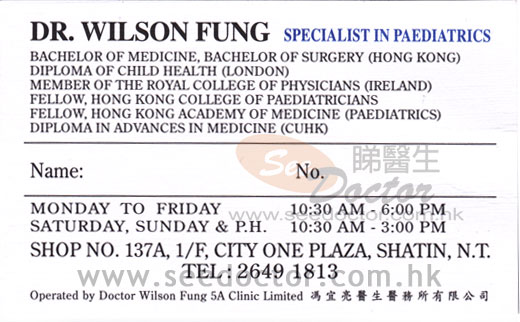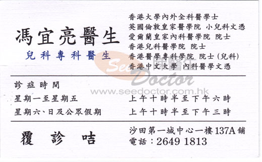 一直選用馮醫生為家庭醫生,無論在懷孕期間或子女成長期間,馮醫生都是信心之選!他能理解病徵,從源頭醫治,對症下藥!雖收費很貴,但用藥不受身,特別於兒科病症中,速見成效!等候時間也較長,請盡早預約。