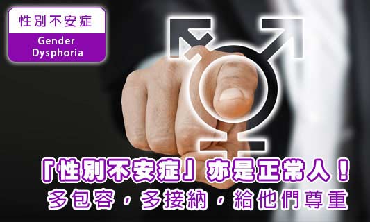 專業剖析 - 性別不安症 指一個人在心理上無法認同自己的生理性別,對於自己本身的性別感到厭惡,認為自己應該屬於其他性別。這感覺好比他們由出生開始便穿著一件不合身的衣服,渾身不自在,可是無法脫下,每當照鏡時,它也在無時無刻提醒自己,這件衣服多難看,這簡直是一種折磨。 |