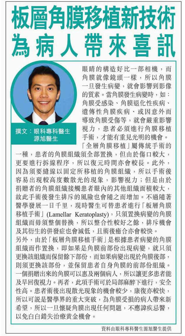 | 現今進行白內障手術治療是非常普遍,但術後依然有機會還有度數上的問題。例如近視、遠視、散光或老花,症狀包括視力模糊、要佩戴眼鏡才可以....... |