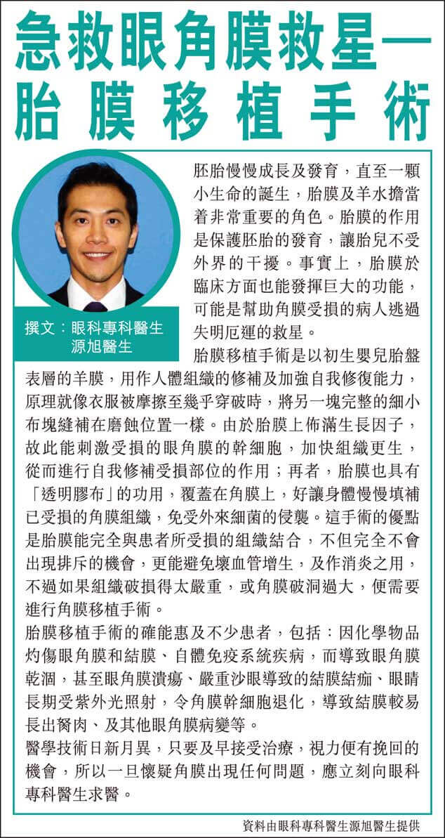 急救眼角膜救星–胎膜移植手術