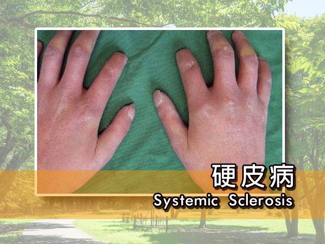 硬皮病是一種自體免疫病,即免疫系統攻擊自己的組織,此病並不常見。顧名思義,硬皮病主要的病徵是硬皮,患者的皮膚會變硬和變厚,主要原因是皮膚下的軟組織受到攻擊而導致發炎和纖維化。然後,受影響的皮膚會逐漸萎縮,毛髮脫落,皮膚因喪失正常皺紋而變得光滑,有些病人還會有皮膚色素變化。這些變化首先影響手指,患者的手會變得浮腫、變紅和痕癢。當病情進一步惡化,硬皮病會向上伸延到其他地方。一些病人面部的皮膚亦會硬化,導致眼睛和咀縮小。