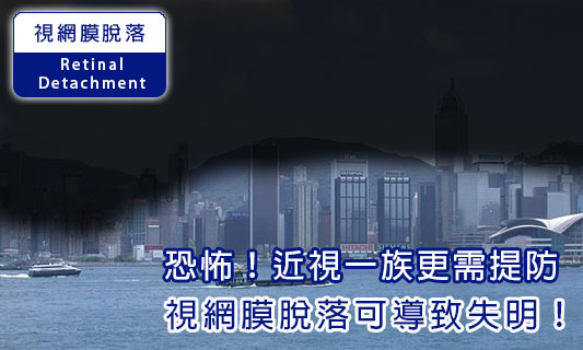 專業剖析 - 視網膜脫落 視網膜是由多層細胞組成的。當視網膜的「神經上皮層」和「色素上皮層」分離,便稱之為「視網膜脫落」。由於脫落了的視網膜會因為失去養份供應而喪失視覺功能,如得不到及時和適當的治療,視力可能會因為視網膜上的細胞痿縮而永久受損,引致失明。 |