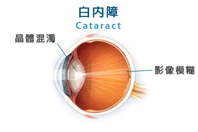 每人眼內都有一顆天然晶體,當晶體變得混濁時便會形成白內障。通常可分為先天性與後天性兩種,其中又以後天性的老年性白內障為最常見。一般來說,隨著年齡的增長,白內障的發病率逐漸提高。而其他病因包括先天性、創傷性、深近視或因糖尿病而引起的白內障。