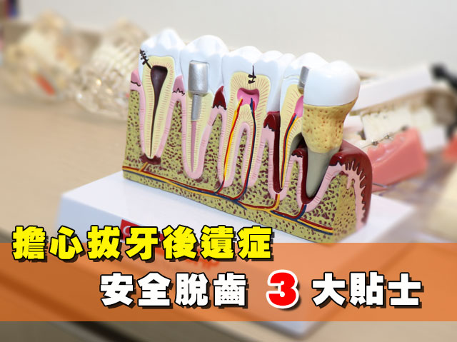 對於拔牙,很多人都會聞之色變,他們不單懼怕牙齒被拔離口腔的一刻,還很擔心拔牙的後遺症,像是血流不止、傷口腫痛等,只像拔牙只是痛苦的開始,一直要對拔牙後的不習慣感覺完全消退後,才覺得是真正的痊癒。