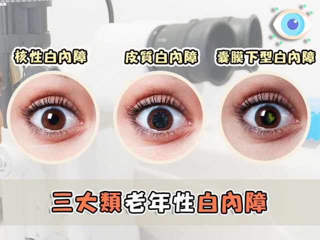 白內障其實細分很多種,最常見的三大類老年性白內障為: