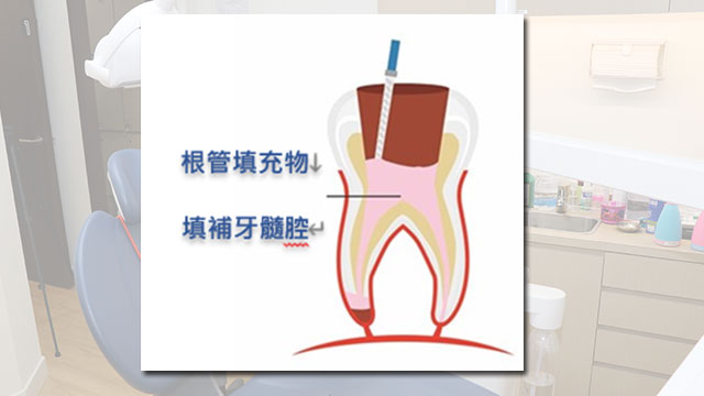 7. 密封根管:放置無菌的根管填充物,並以熱塑性材料填充後加熱密封牙齒,以防止再次感染。如有需要會放置牙樁(牙柱)加固牙齒內部結構。