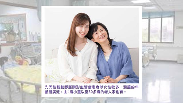腦動靜脈畸形血管瘤(Cerebral Arteriovenous Malformation - AVM)是先天性的腦血管病變,患者年齡廣泛,由4歲小童以至80多歲的老人家也有。先天性的腦動靜脈畸形血管瘤一旦破裂,能導致嚴重的出血性中風,對病人的腦神經功能及身心殘害影響至鉅,亦會令家庭親人背負沉重的身心及經濟負擔。