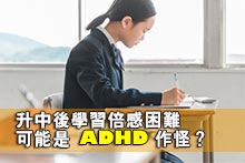 ADHD亦即「專注力不足及過度活躍症」,主要由於腦神經傳導物質失調引致。病徵包括過動、衝動、不專心等。根據研究顯示,兒童的ADHD發病率約為5%至7%,即每20名兒童便有一位有機會確診ADHD。ADHD病徵會影響到他們的學業、成長及人際關係等。若沒有得到適當和及時的治療,病徵很大機會持續至成年後,繼而影響到患者的工作表現、社交關係和日常生活,故絕不容忽視。