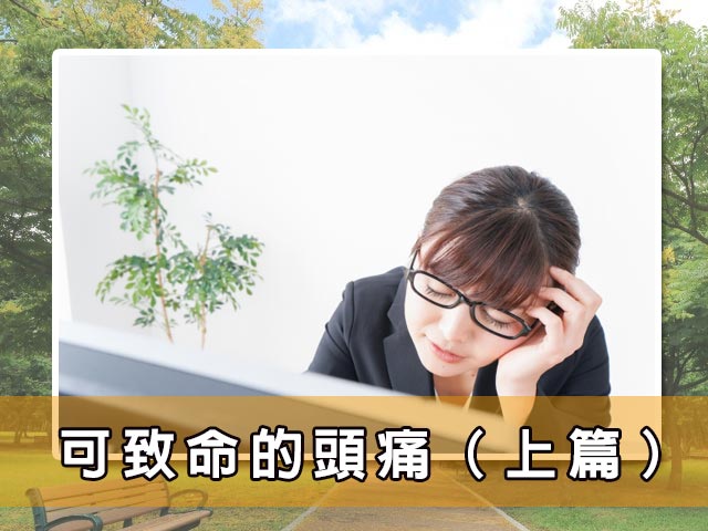 這期專欄要和讀者分享最近發生的三個真實 案例,而這三個案例中的患者都有共同的病 徵:「頭痛」。