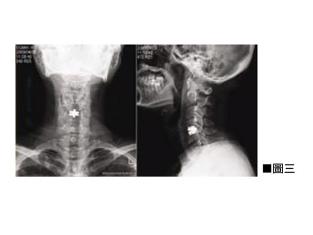 陸先生最後聽從筆者的醫學意見,入院進行了四小時的神經外科微創手術──頸椎前路椎間盤切除及椎體融合術,手術目的是為脊髓中樞神經減壓及鞏固頸椎的穩定性。手術後陸先生臥床休息一晚,第二天早上他發現四肢已經沒有麻木痺痛的感覺,四肢肌肉力度亦有明顯改善。在筆者的監察下他下床走動,發覺雙腳站立地面上時的感覺比手術前實在而且穩健得多,走起路來雙腳力度及步履明顯進步同時相當平穩。從X-光及磁力共振觀察,頸椎第四、五及第五、六節脊髓受壓程度已大大改善。(見圖二)陸先生當天下午,即手術後24小時便出院回家了。
