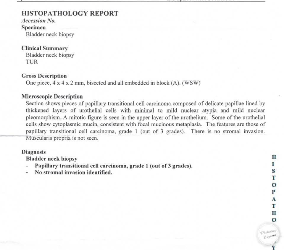 本人近日確診患膀胱癌一期,主診醫生已割除腫瘤和化驗,化驗報告是4mm x4mm x2mm size, 主診醫生已安排本人做電腦掃瞄和三個月後照膀胱內窺鏡。 除了此醫院程序後便沒有期他。 現請問醫生,我很擔心,為何只割腫瘤而沒有期他藥物或化療程序。