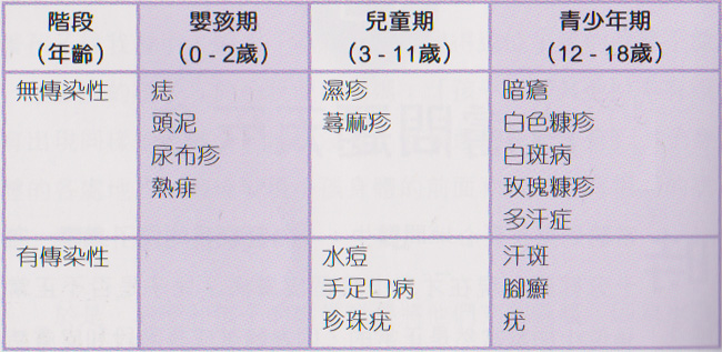 不同成長階段常見的皮膚病