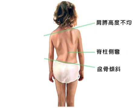 通常脊椎側彎會造成兩側肩胛骨不一樣高低,且一側的肩胛骨會比較向內,而另一側則是向外,向外的這一側肩胛骨下角會向後突出