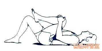 拉動一側膝關節直至感覺到下腰部及臀部適度的拉展,另側膝關節重複相同動作