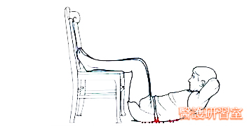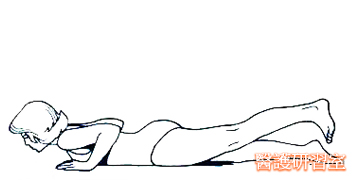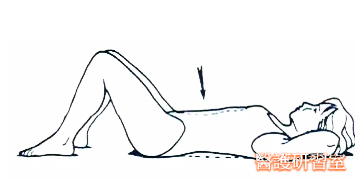 將雙足置於高位,手臂放於頸後或胸前,整個骨盆放平,抬高頭部和肩關節