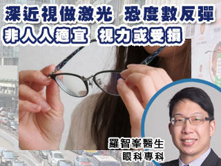 坊間有指做完激光手術,或有機會度數「反彈」?有眼科專科醫生指,情況並不常見,只是800度以上深近視才有機會出現。另外,並非所有人皆適合做矯視手術,要視乎角膜厚薄及形狀。...